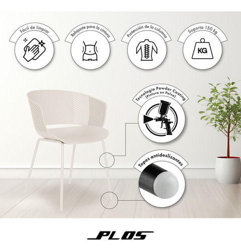 Descripción del Producto ====================== SILLA DE COMEDOR CAPRI X4 UNIDADES (VARIANTES DE COLORES: NEGRO/BEIGE/GRIS CALIDO) El modelo Capri es un diseño original que se combina con materiales de Polipropileno y Metal Lacado. Dándole así un diseño mas atractivo, moderno y una comodidad placentera al sentarse. Especificaciones: *Peso: 4.86kg *Alto: 79cm *Ancho: 58cm *Profundo: 55cm *Peso Máximo de carga: 150kg *Material: Polipropileno *Patas: Metal Lacado ************************************************************* Características: *Código: 10001 *Condición del ítem: Nuevo *Embalaje del envío: Auto-despachable *Marca: PLOS *Material del asiento: Polipropileno *Diseño reforzado *Orificios de ventilación *Asiento ergonómico *Incluye kit de armado y manual de armado *Topes antideslizantes ¿Cómo solicitar factura? Puedes cargar los datos al momento de la compra o bien puedes enviarnos un mensaje luego de haber realizado la compra con los datos para realizar la factura. FORMAS DE ENTREGA > Retiro personal: por nuestra Bodega en Pudahuel, RM de Lunes a Viernes de 10 a 17hs > Mercado Envíos SEGUIMIENTO DE ENVIOS ¿Cómo hago seguimiento del envío? Una vez despachado tu pedido, en el detalle de tu compra va a estar disponible el código de seguimiento con la empresa encargada de la entrega del paquete. ¡CUALQUIER DUDA ESTAMOS PARA AYUDARTE! ** Publicado utilizando Astroselling **